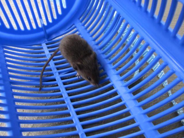 なにか小さいのが事務所の外をウロウロしてたので苦労して捕獲してみた。手に乗るほどの小さなネズミ。ネットで調べたら野ネズミらしい。(てっきりドブネズミの子供かと思った。)これで大人なのだが箱根の黒たまごより小さいので一口でいけそうだ。噛まれるかと思って恐る恐る触ったら可愛いのなんの。このネズミはタマちゃんと名付けて飼育しようかと思ったがエサが何か分からんので解放してやった。今日もひとつ良いことをした。